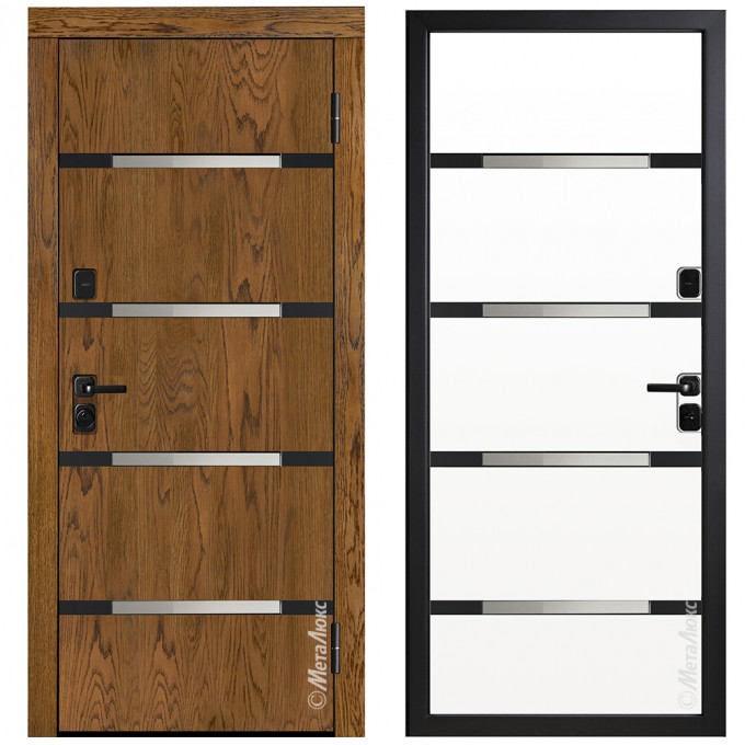 • Дополнительную жесткость конструкции придает особое расположение ребер ( 2 вертикальных, 2 горизонтальных) • Усиленные петли "Combi Arialdo"(Италия), диаметром 22 мм, обеспечивают бесшумное открывание и исключают перекос полотна • Усиление зоны петель легированным металлом квадратного сечения • Усиление замковой части металлическим карманом • Регулятор притвора (обеспечивает плотное прилегание дверного полотна к коробу) • Противосъемные ригеля, диаметром 18мм (5 шт.), исключают вероятность взлома путем среза петель•Безмолдинговая система крепления внутренней панели позволяет добиться безупречного внешнего вида изделия. Особая конфигурация профиля полотна дает возможность осуществить замену внутренней панели при необходимости. |