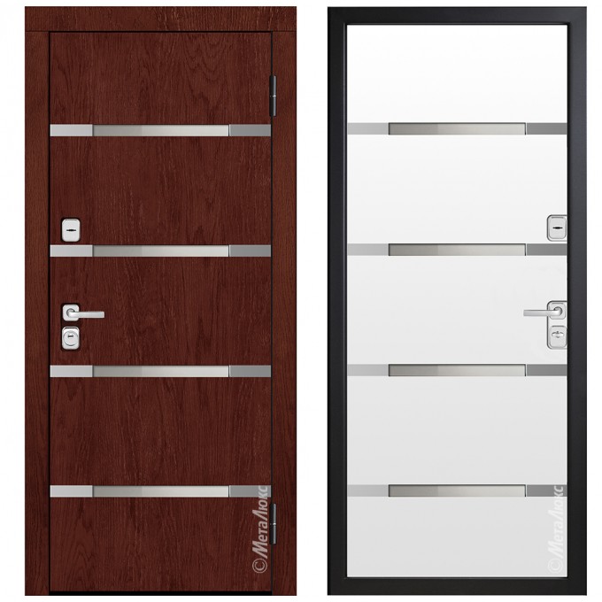 • Дополнительную жесткость конструкции придает особое расположение ребер ( 2 вертикальных, 2 горизонтальных) • Усиленные петли "Combi Arialdo"(Италия), диаметром 22 мм, обеспечивают бесшумное открывание и исключают перекос полотна • Усиление зоны петель легированным металлом квадратного сечения • Усиление замковой части металлическим карманом • Регулятор притвора (обеспечивает плотное прилегание дверного полотна к коробу) • Противосъемные ригеля, диаметром 18мм (5 шт.), исключают вероятность взлома путем среза петель•Безмолдинговая система крепления внутренней панели позволяет добиться безупречного внешнего вида изделия. Особая конфигурация профиля полотна дает возможность осуществить замену внутренней панели при необходимости. |