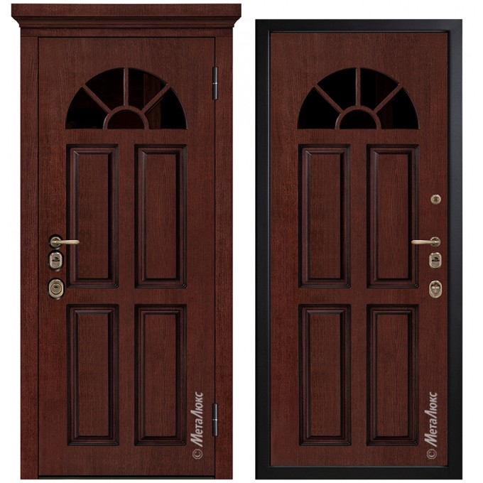 • Дополнительную жесткость конструкции придает особое расположение ребер ( 2 вертикальных, 2 горизонтальных) • Усиленные петли "Combi Arialdo"(Италия), диаметром 22 мм, обеспечивают бесшумное открывание и исключают перекос полотна • Усиление зоны петель легированным металлом квадратного сечения • Усиление замковой части металлическим карманом • Регулятор притвора (обеспечивает плотное прилегание дверного полотна к коробу) • Противосъемные ригеля, диаметром 18мм (5 шт.), исключают вероятность взлома путем среза петель•Безмолдинговая система крепления внутренней панели позволяет добиться безупречного внешнего вида изделия. Особая конфигурация профиля полотна дает возможность осуществить замену внутренней панели при необходимости. • Декоративная капитель |