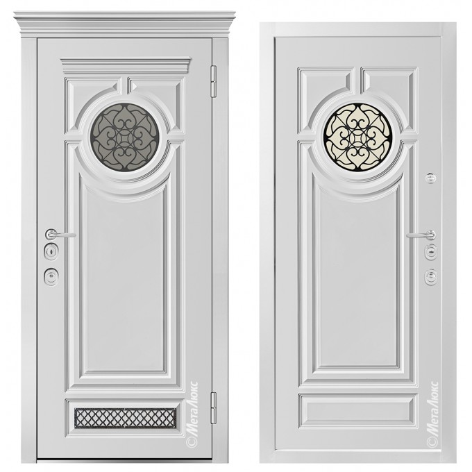 • Дополнительную жесткость конструкции придает особое расположение ребер ( 2 вертикальных, 2 горизонтальных) • Усиленные петли "Combi Arialdo"(Италия), диаметром 22 мм, обеспечивают бесшумное открывание и исключают перекос полотна • Усиление зоны петель легированным металлом квадратного сечения • Усиление замковой части металлическим карманом • Регулятор притвора (обеспечивает плотное прилегание дверного полотна к коробу) • Противосъемные ригеля, диаметром 18мм (5 шт.), исключают вероятность взлома путем среза петель •Особый профиль полотна (края полотна завальцованы, что придает дополнительную жесткость и исключает возможность вскрытия двери силовым отжимом) •Безмолдинговая система крепления внутренней панели позволяет добиться безупречного внешнего вида изделия. Особая конфигурация профиля полотна дает возможность осуществить замену внутренней панели при необходимости. • Декоративная капитель |