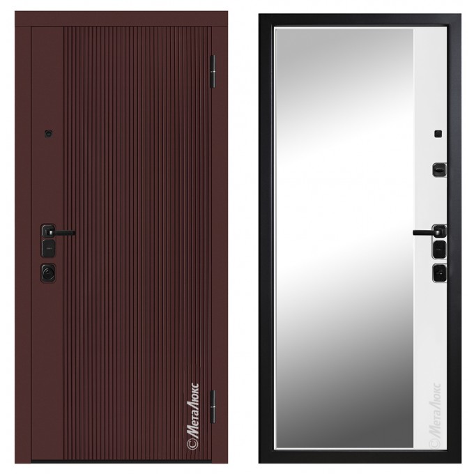 • Дополнительную жесткость конструкции придает особое расположение ребер ( 2 вертикальных, 2 горизонтальных) • Усиленные петли "Combi Arialdo"(Италия), диаметром 22 мм, обеспечивают бесшумное открывание и исключают перекос полотна • Усиление зоны петель легированным металлом квадратного сечения • Усиление замковой части металлическим карманом • Регулятор притвора (обеспечивает плотное прилегание дверного полотна к коробу) • Противосъемные ригеля, диаметром 18мм (5 шт.), исключают вероятность взлома путем среза петель •Особый профиль полотна (края полотна завальцованы, что придает дополнительную жесткость и исключает возможность вскрытия двери силовым отжимом) •Безмолдинговая система крепления внутренней панели позволяет добиться безупречного внешнего вида изделия. Особая конфигурация профиля полотна дает возможность осуществить замену внутренней панели при необходимости.