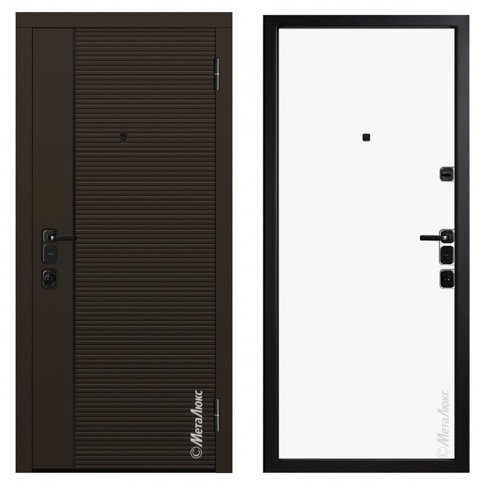 • Дополнительную жесткость конструкции придает особое расположение ребер ( 2 вертикальных, 2 горизонтальных) • Усиленные петли "Combi Arialdo"(Италия), диаметром 22 мм, обеспечивают бесшумное открывание и исключают перекос полотна • Усиление зоны петель легированным металлом квадратного сечения • Усиление замковой части металлическим карманом • Регулятор притвора (обеспечивает плотное прилегание дверного полотна к коробу) • Противосъемные ригеля, диаметром 18мм (5 шт.), исключают вероятность взлома путем среза петель •Особый профиль полотна (края полотна завальцованы, что придает дополнительную жесткость и исключает возможность вскрытия двери силовым отжимом) •Безмолдинговая система крепления внутренней панели позволяет добиться безупречного внешнего вида изделия. Особая конфигурация профиля полотна дает возможность осуществить замену внутренней панели при необходимости.