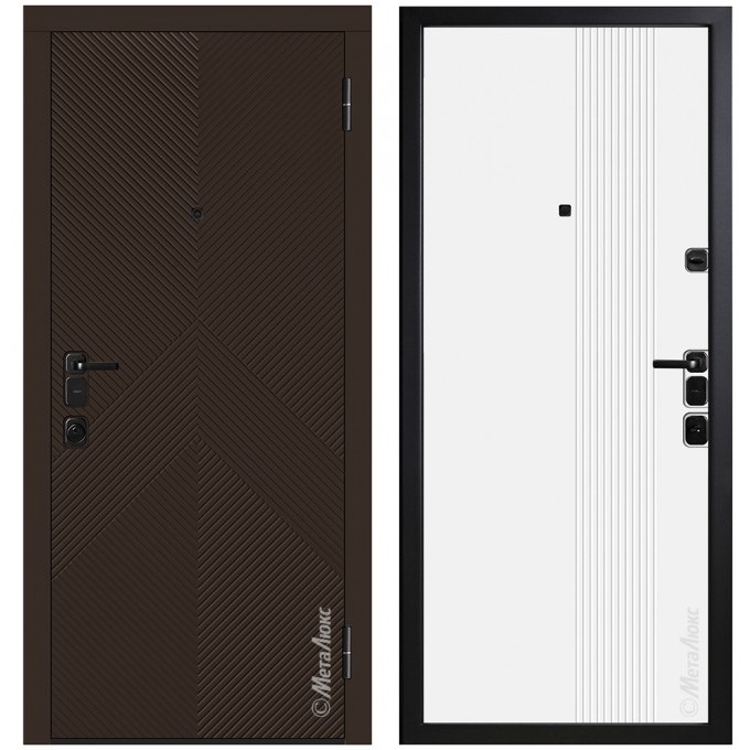 • Дополнительную жесткость конструкции придает особое расположение ребер ( 2 вертикальных, 2 горизонтальных) • Усиленные петли "Combi Arialdo"(Италия), диаметром 22 мм, обеспечивают бесшумное открывание и исключают перекос полотна • Усиление зоны петель легированным металлом квадратного сечения • Усиление замковой части металлическим карманом • Регулятор притвора (обеспечивает плотное прилегание дверного полотна к коробу) • Противосъемные ригеля, диаметром 18мм (5 шт.), исключают вероятность взлома путем среза петель •Особый профиль полотна (края полотна завальцованы, что придает дополнительную жесткость и исключает возможность вскрытия двери силовым отжимом) •Безмолдинговая система крепления внутренней панели позволяет добиться безупречного внешнего вида изделия. Особая конфигурация профиля полотна дает возможность осуществить замену внутренней панели при необходимости.