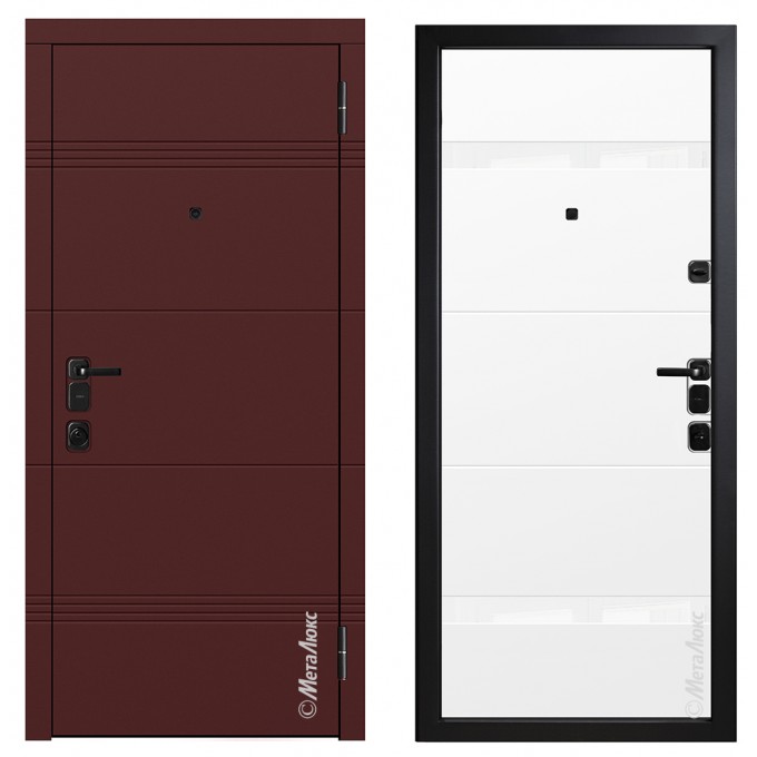 • Дополнительную жесткость конструкции придает особое расположение ребер ( 2 вертикальных, 2 горизонтальных) • Усиленные петли "Combi Arialdo"(Италия), диаметром 22 мм, обеспечивают бесшумное открывание и исключают перекос полотна • Усиление зоны петель легированным металлом квадратного сечения • Усиление замковой части металлическим карманом • Регулятор притвора (обеспечивает плотное прилегание дверного полотна к коробу) • Противосъемные ригеля, диаметром 18мм (5 шт.), исключают вероятность взлома путем среза петель •Особый профиль полотна (края полотна завальцованы, что придает дополнительную жесткость и исключает возможность вскрытия двери силовым отжимом) •Безмолдинговая система крепления внутренней панели позволяет добиться безупречного внешнего вида изделия. Особая конфигурация профиля полотна дает возможность осуществить замену внутренней панели при необходимости.