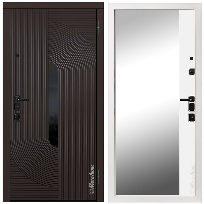 • Дополнительную жесткость конструкции придает особое расположение ребер ( 2 вертикальных, 2 горизонтальных) • Усиленные петли "Combi Arialdo"(Италия), диаметром 22 мм, обеспечивают бесшумное открывание и исключают перекос полотна • Усиление зоны петель легированным металлом квадратного сечения • Усиление замковой части металлическим карманом • Регулятор притвора (обеспечивает плотное прилегание дверного полотна к коробу) • Противосъемные ригеля, диаметром 18мм (5 шт.), исключают вероятность взлома путем среза петель •Особый профиль полотна (края полотна завальцованы, что придает дополнительную жесткость и исключает возможность вскрытия двери силовым отжимом) •Безмолдинговая система крепления внутренней панели позволяет добиться безупречного внешнего вида изделия. Особая конфигурация профиля полотна дает возможность осуществить замену внутренней панели при необходимости.