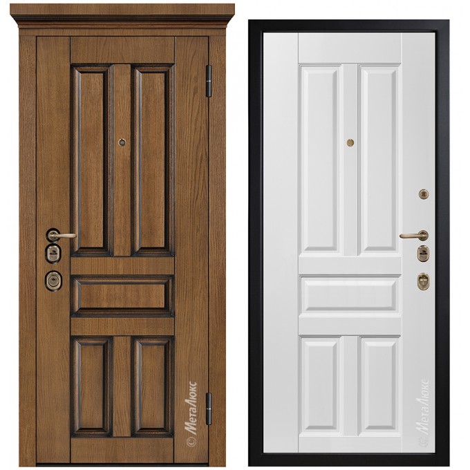 • Дополнительную жесткость конструкции придает особое расположение ребер ( 2 вертикальных, 2 горизонтальных) • Усиленные петли "Combi Arialdo"(Италия), диаметром 22 мм, обеспечивают бесшумное открывание и исключают перекос полотна • Усиление зоны петель легированным металлом квадратного сечения • Усиление замковой части металлическим карманом • Регулятор притвора (обеспечивает плотное прилегание дверного полотна к коробу) • Противосъемные ригеля, диаметром 18мм (5 шт.), исключают вероятность взлома путем среза петель •Особый профиль полотна (края полотна завальцованы, что придает дополнительную жесткость и исключает возможность вскрытия двери силовым отжимом) •Безмолдинговая система крепления внутренней панели позволяет добиться безупречного внешнего вида изделия. Особая конфигурация профиля полотна дает возможность осуществить замену внутренней панели при необходимости. • Декоративная капитель |