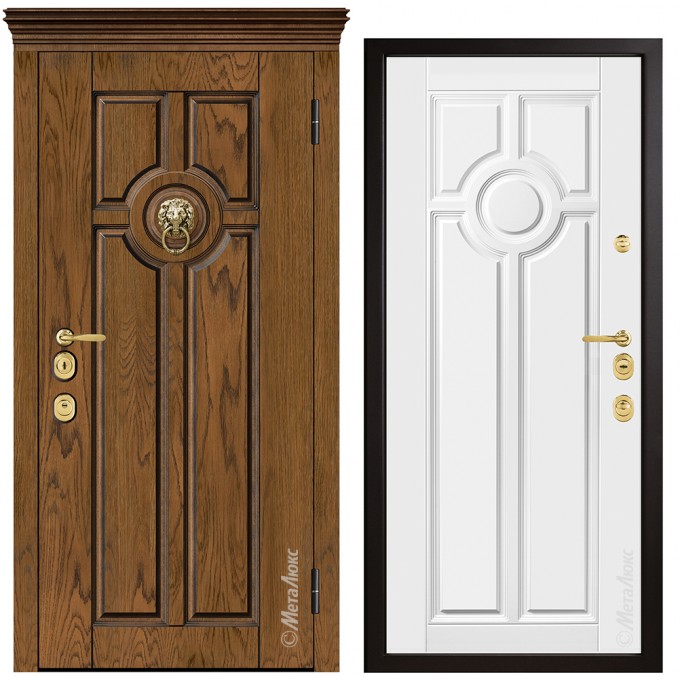 • Дополнительную жесткость конструкции придает особое расположение ребер ( 2 вертикальных, 2 горизонтальных) • Усиленные петли "Combi Arialdo"(Италия), диаметром 22 мм, обеспечивают бесшумное открывание и исключают перекос полотна • Усиление зоны петель легированным металлом квадратного сечения • Усиление замковой части металлическим карманом • Регулятор притвора (обеспечивает плотное прилегание дверного полотна к коробу) • Противосъемные ригеля, диаметром 18мм (5 шт.), исключают вероятность взлома путем среза петель•Безмолдинговая система крепления внутренней панели позволяет добиться безупречного внешнего вида изделия. Особая конфигурация профиля полотна дает возможность осуществить замену внутренней панели при необходимости. • Декоративная капитель |